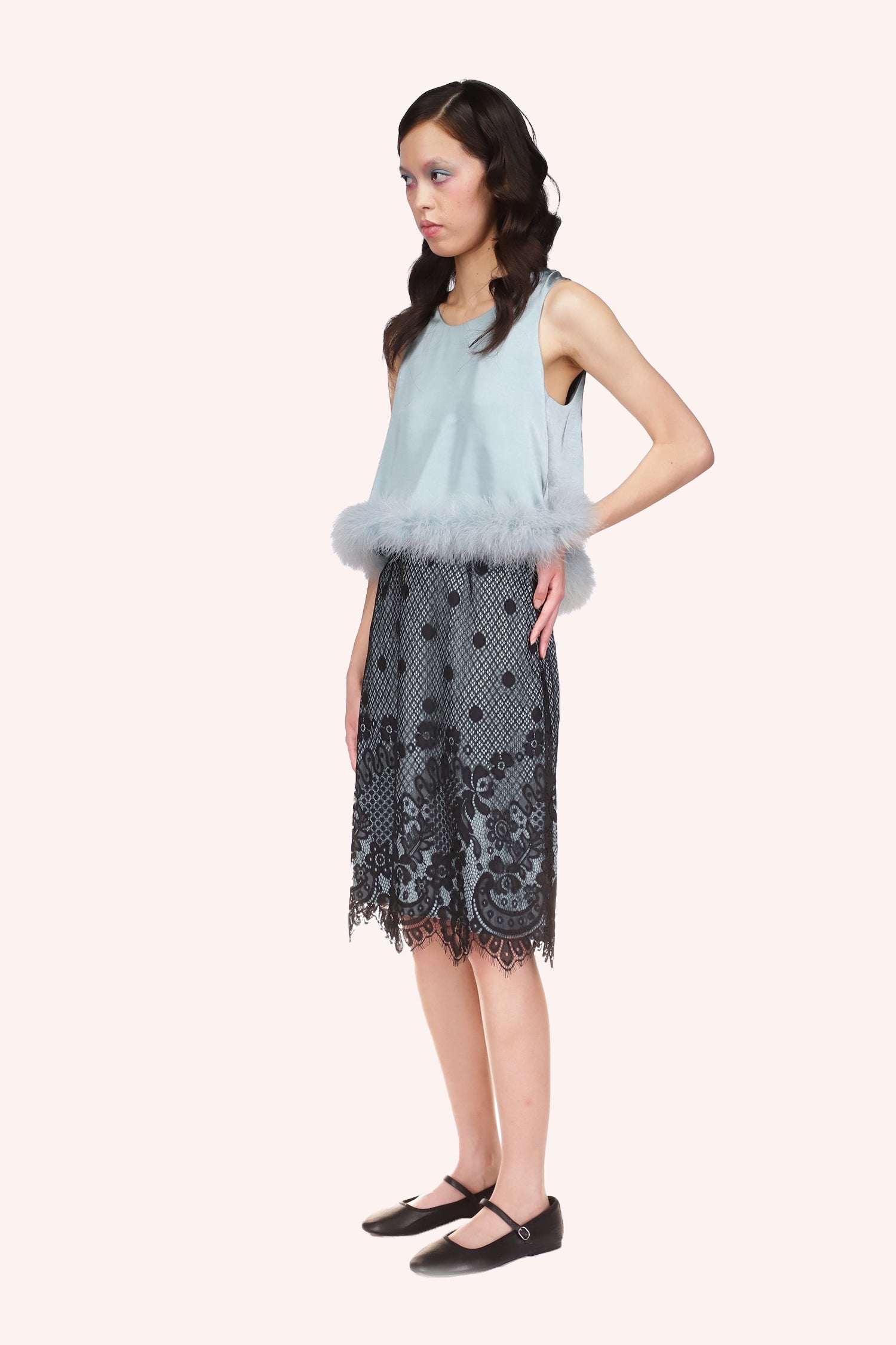 Washed Satin With Lace Top Trimmed With Marabou Feather